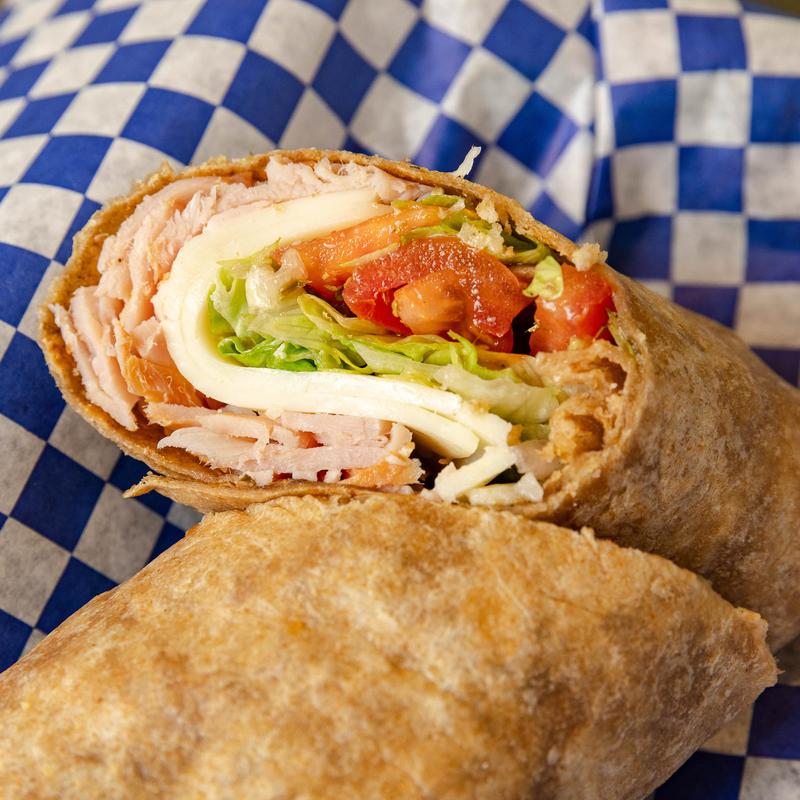 Smoked turkey breast, lettuce, tomatoes, purple onion, olive oil, oregano, provolone cheese, served on a wheat wrap